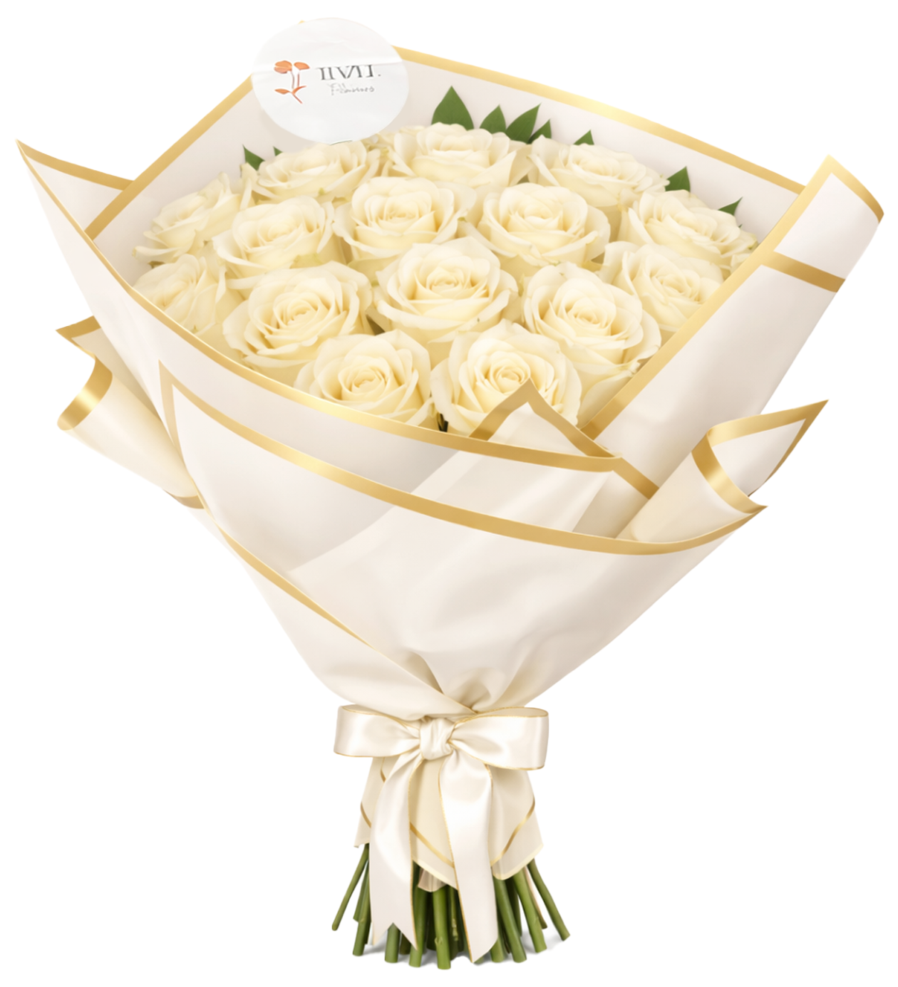 Özenle seçilen beyaz ithal güllerle hazırlanan bu buket, en özel anlarınıza eşlik ediyor.