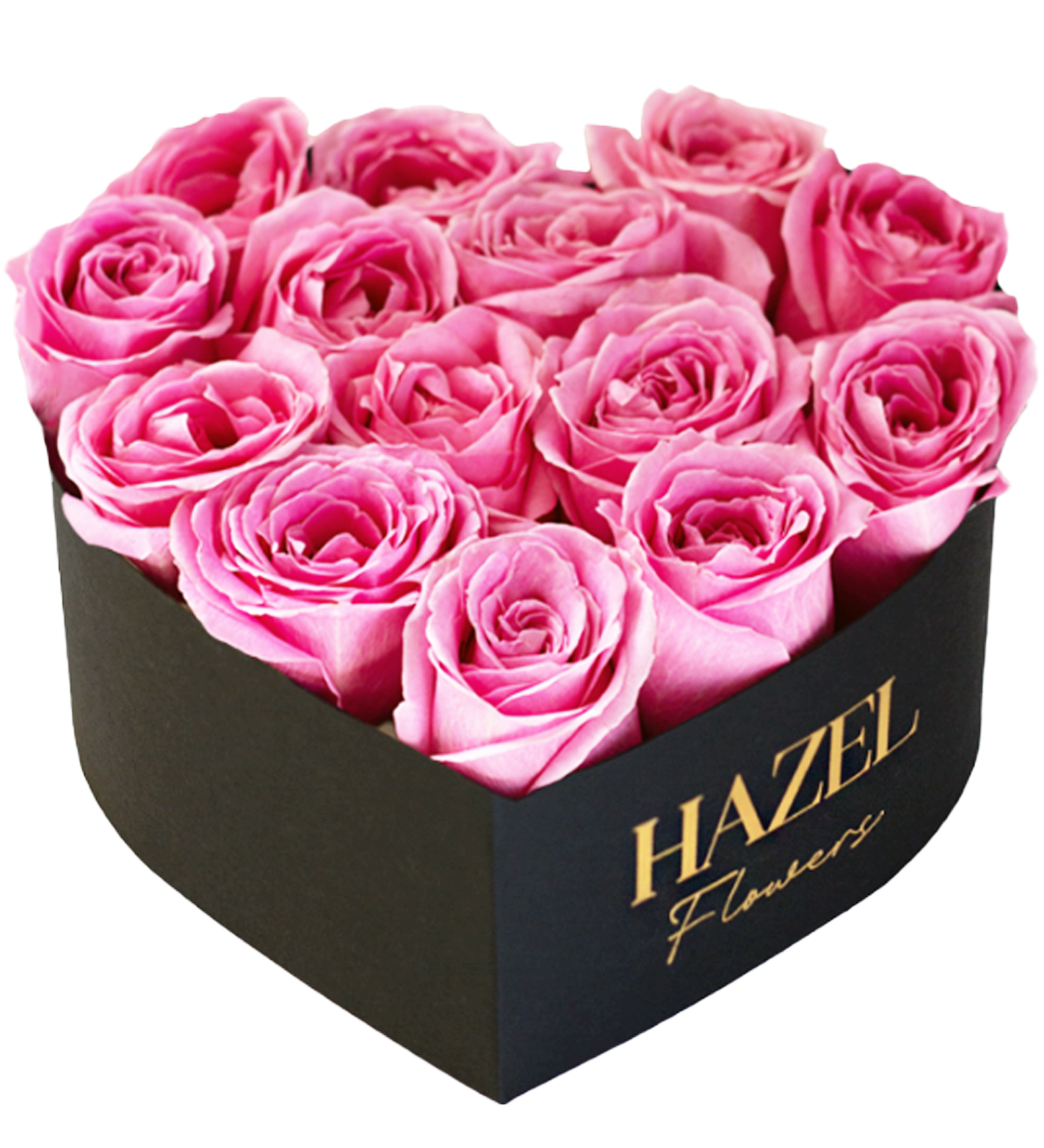Hazel Flowers imzasıyla hazırlanan bu özel tasarım, premium kalite siyah kalp formundaki kutu içerisinde, btaze pembe güllerle hayat buluyor.